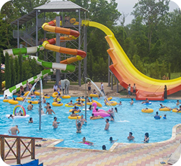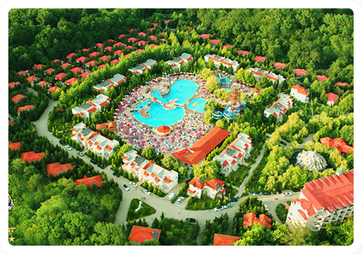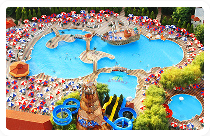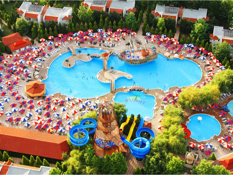 2 аквапарка- 19 горок для взрослых и детей, 1-я береговая линия, дискотеки и концерты, а также пенные вечеринки в крупнейшем